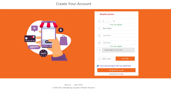 By clicking on [Register Now], you have successfully created an account and able to login by entering your password